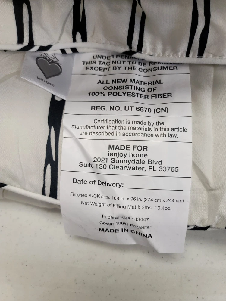Comforter set as described, arrived in new condition, well-protected from the rough journey. Seller did a great job packaging the large comforter and quickly shipping it. Very pleased with my purchase, no issues, and a very good value.