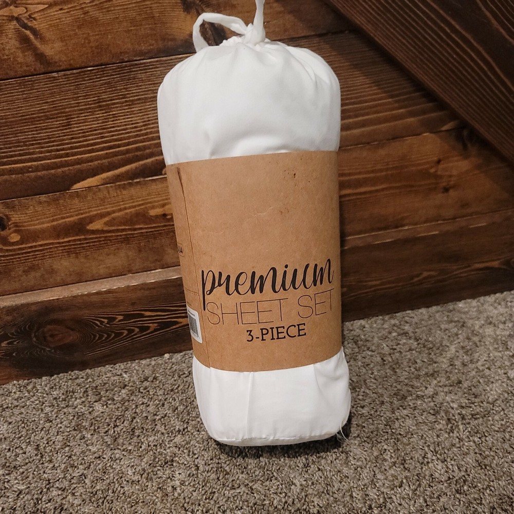 ienjoy Home white 3 Piece Premium Sheet Set Twin Deep Pocket up to 16''.