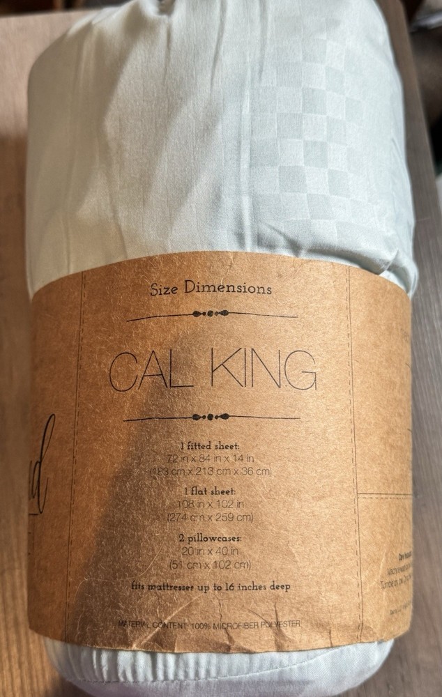 The Expressed In Embossed by Home Collection 4-Piece sheet set is designed with your comfort in mind. These sheets feature superior weave for durability and a buttery-soft touch. Product Features 4-piece set includes 1 Flat Sheet, 1 Fitted Sheet, and 2 Pillowcases 1 California King Fitted Sheet - 72"W x 84"L x 14” 1 California King Flat Sheet - 108"W x 102"L 2 King Pillowcases - 20"W x 40"L Superior 800 thread count weave for durability and a silky-smooth touch 16" deep pocket fitted sheets - perfect for oversized mattresses Hypoallergenic and Antimicrobial for allergy sufferers and sensitive skin Fade Resistant, Wrinkle Free, No Ironing Necessary Microfiber Machine wash cold, tumble dry low