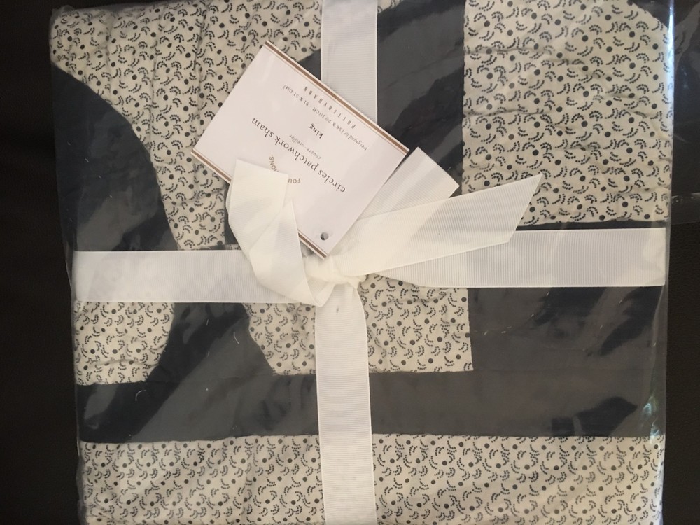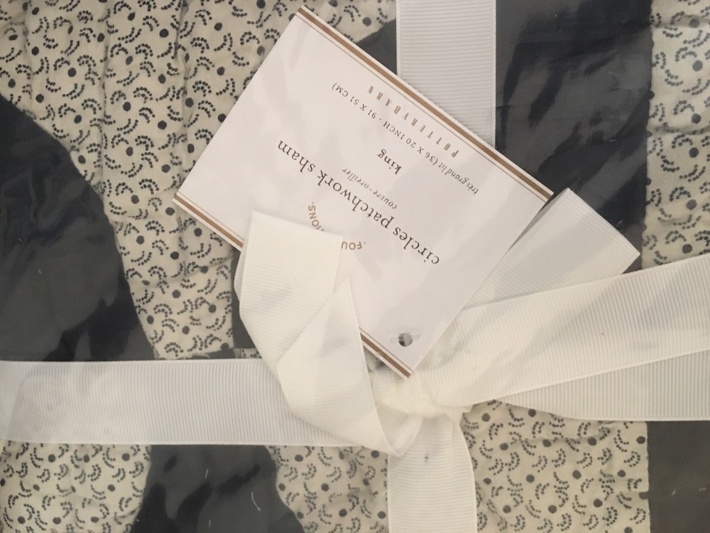 Pottery Barn New king Sham Diamonds and squares in a classic palette are perfectly pieced together by hand to create our Navy Circles quilt. Made of pure cotton. Pure cotton batting. Machine wash in cold water, gentle cycle. Do not use bleach. Tumble dry on low heat; remove promptly. Warm iron as needed. From a clean, pet-free, smoke-free store Thank you