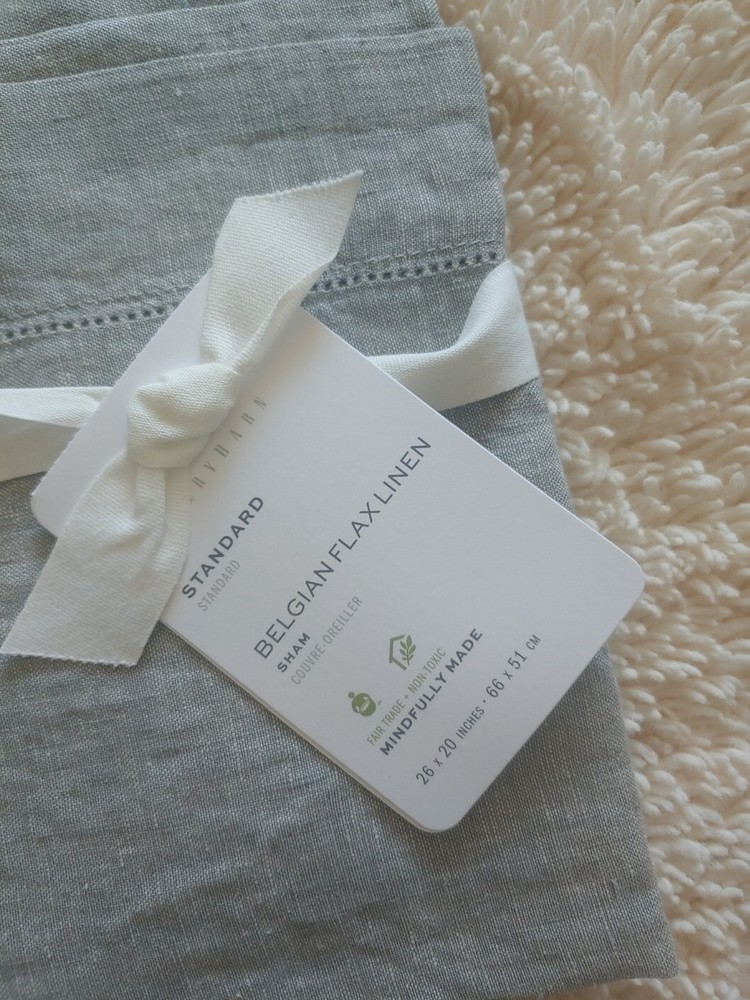 new never used or tested. pottery barn exclusive. fixed price. serious bidder only please buyer must pay. i don't accept any offer. color: flagstone 1 euro shams : original $80 1pc of euro sham only Euro Sham: 26" sq Flange: 2" DETAILS YOU'LL APPRECIATE Made of 100% Belgian flax. Microscopic breaks in the fabric provide a light massaging affect, and high absorbency meaning they'll always feel fresh and cool.