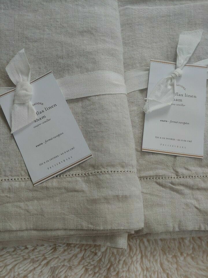 new never used or tested. pottery barn exclusive. two euro size sham only fixed price. serious bidder only please buyer must pay. color: flax 2 euro shams : original $150 Euro: 26" square Flange: 2" wide DETAILS YOU'LL APPRECIATE Made of 100% Belgian flax. Microscopic breaks in the fabric provide a light massaging affect, and high absorbency meaning they'll always feel fresh and cool.