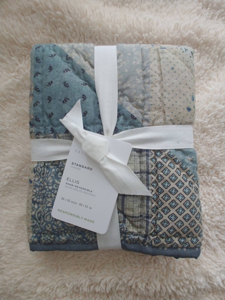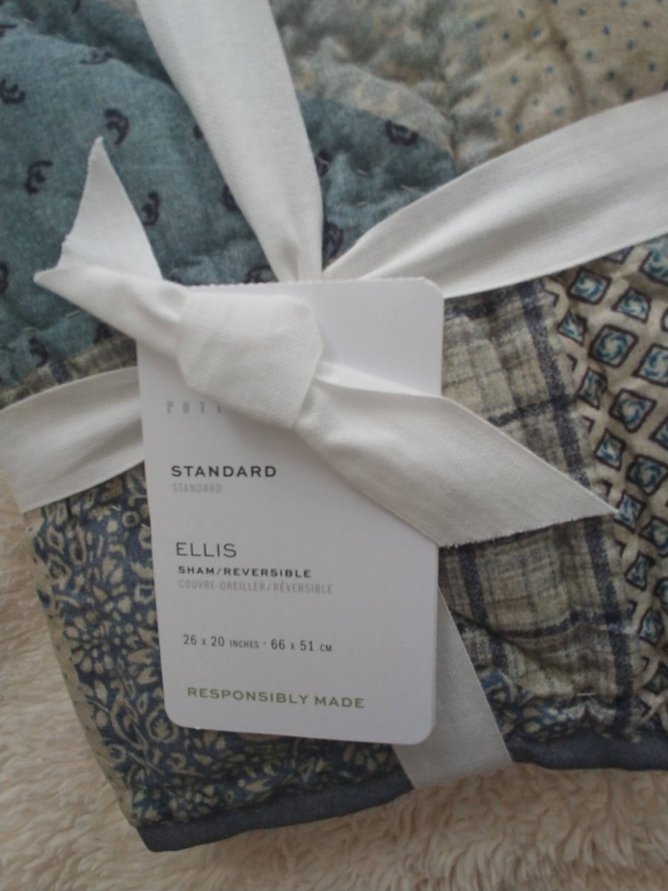 new never used or tested. pottery barn exclusive. fixed price. serious bidder only please buyer must pay. shipping: 1pc= &6.98, each additional pc= $3.00 1 standard shams : original $69.50 Euro Sham: 26" sq Handcrafted from 100% cotton, reverses to coordinating pattern. 100% polyester fill. Reverses to 100% cotton. Sham features a zipper closure.