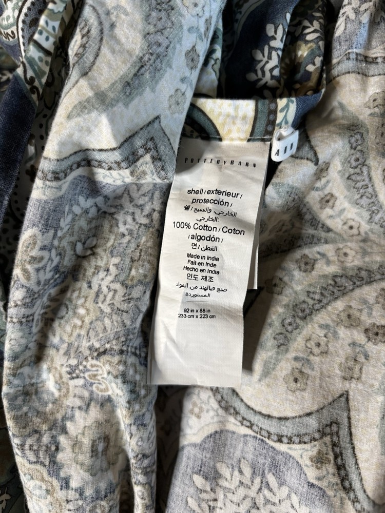 pottery barn Jordana Paisley Percale Duvet Cover- Queen - Blue in EXCELLENT CONDITION!!! There was one spot where the stitches came loose but it has been repaired/sewn. See photos. But in otherwise perfect condition No spots/ stains Smoke & pet free.