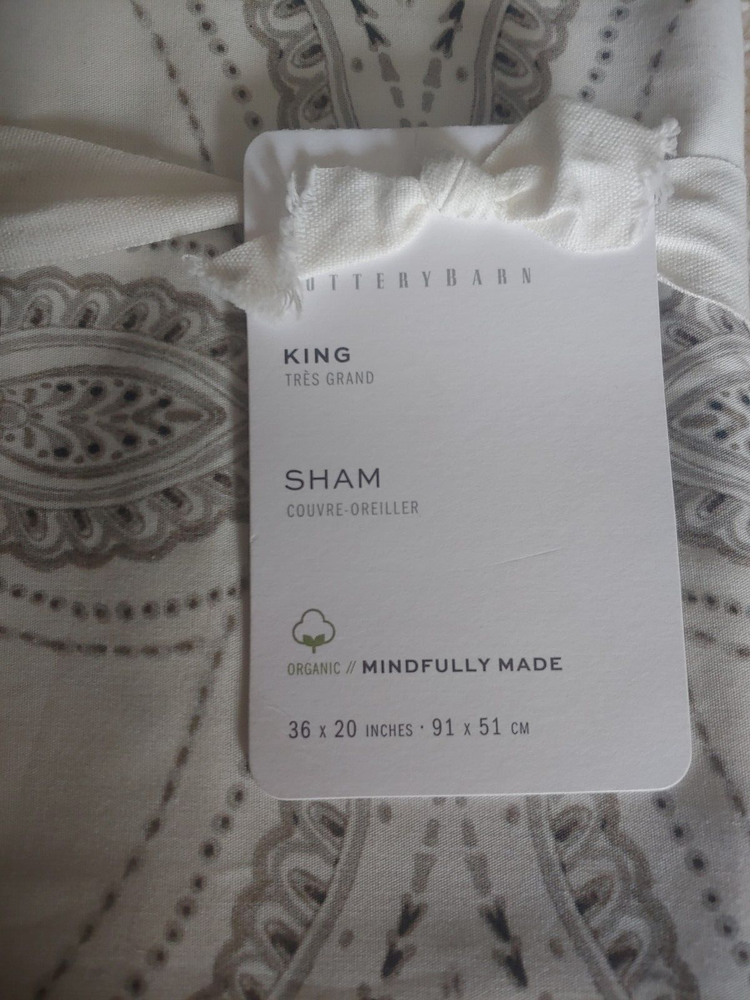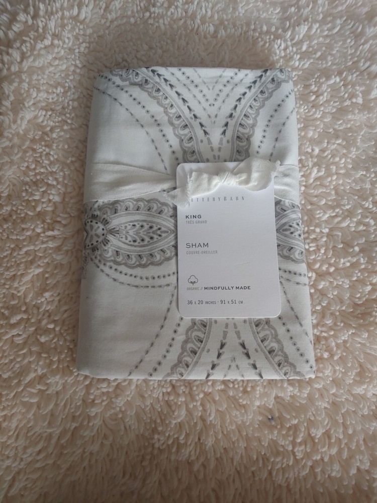 new never used or tested. pottery barn exclusive. 1 king sham only King Sham: 20" h x 36" w fixed price. serious bidder only please buyer must pay. color: GRAY 1 king shams : original $65 Made of 100% organic percale. Sham features an overlap closure. Reverses to the same. 200-thread count. Certified to the Global Organic Textile Standard (GOTS) by CU 847084. GOTS is the international gold standard for organic textiles, ensuring high social and environmental standards from fiber to finished product. Imported. CARE Machine wash in cold water with like colors; normal cycle. Only non-chlorine bleach when needed. Tumble dry on low heat; remove promptly. Warm iron as needed.