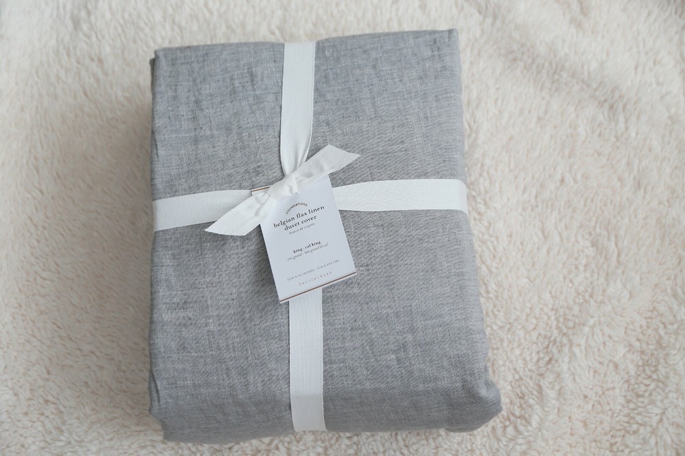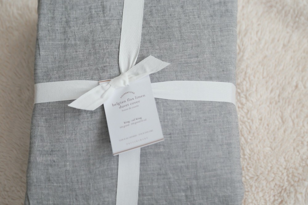 new never used pottery barn exclusive original price $299 at pottery barn store now fixed price. i don't accept any offer. color: flagstone one king/cal.king duvet only DIMENSIONS Duvet Cover King/Cal. King: 92" long x 108" wide CARE & MAINTENANCE Machine wash in cold water, gentle cycle. Use only non-chlorine bleach when needed. Tumble dry on low heat; remove promptly. Warm iron as needed. serious bidder only please buyer must pay.
