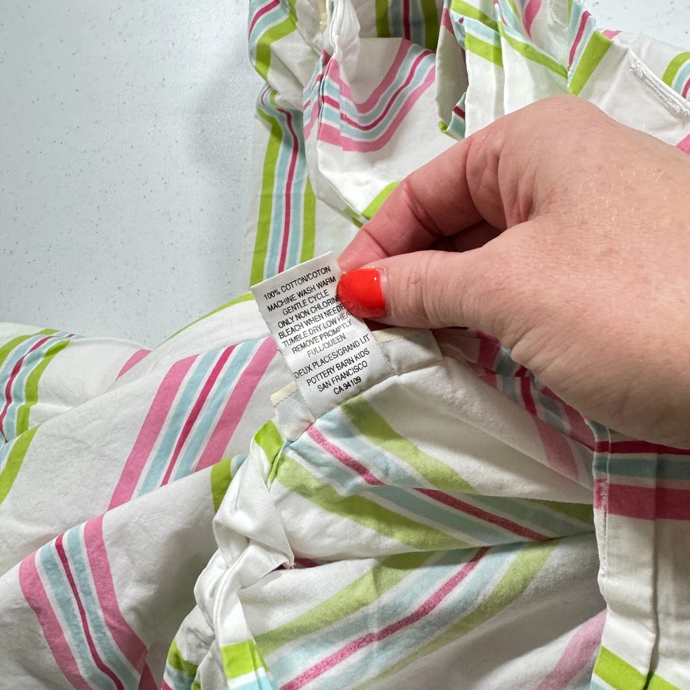 pottery barn kids duvet queen pink green stripes 100% cotton buttons Bundles & Returns ***Combined shipping: BUNDLE and SAVE! $10.99 shipping on combined purchases of 2 or more items. This should show as an option at check out, if not please put all items cart and request new invoice. Domestic us orders only. ***Return policy : Full refund 60 day free returns for US orders ***Follow my store to hear about new deals & coupons! New items listed daily!