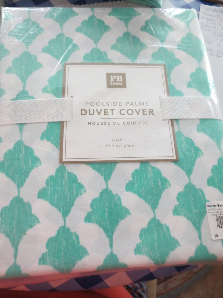 all new with tags ready for a summer refresh poolside palms twin duvet cover in aqua and white plain white puffy coccoon standard pillow sham white with aqua trim EURO pillow sham dorm or beach house ...