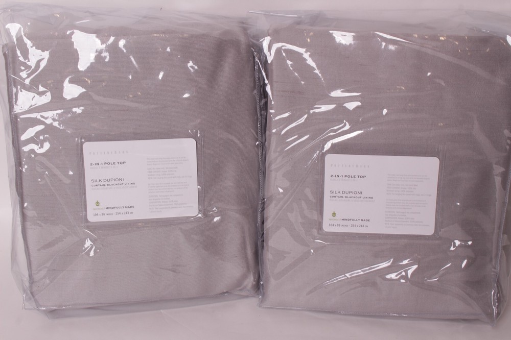 Pottery Barn Silk dupioni blackout curtain panels Set of 2 New with tags Each panel is 104 x 96" Blackout lined Pole pocket or convert to ring top with included hooks (rings sold separately)...