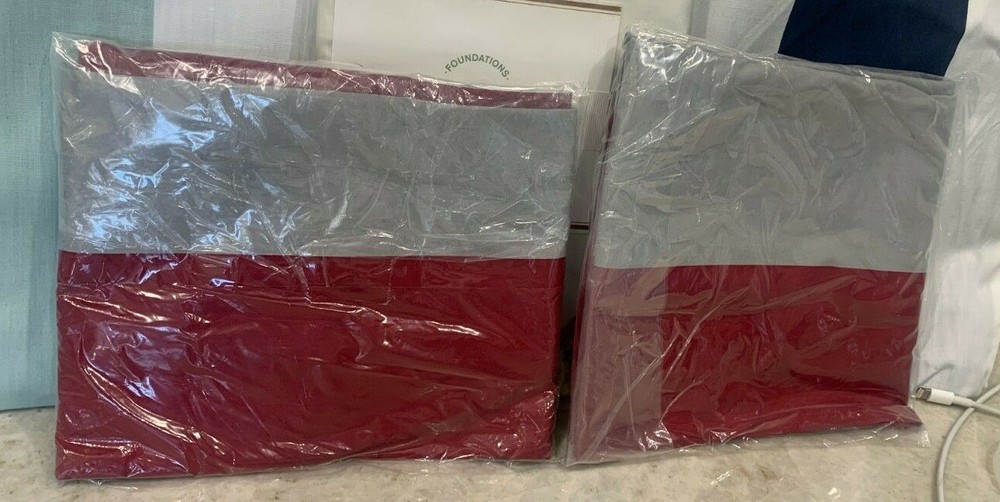 This is set of TWO new Pottery Barn Kids Rugby stripe standard shams in red/gray! Matches the duvet! Brand new, just missing the ribbon packaging. It is stored in my smoke/pet free home. Please feel free to contact me with any questions you might have. My feedback is very important to me. Please contact me before negative feedback is left, I pride myself in being an easy person to work with. Thanks :) I am in no way associated with Williams-Sonoma Inc.