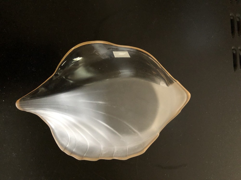 studio nova candy/nut dish, clear & frosted glass, leaf shaped, gold trimmed....