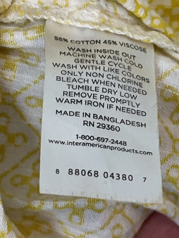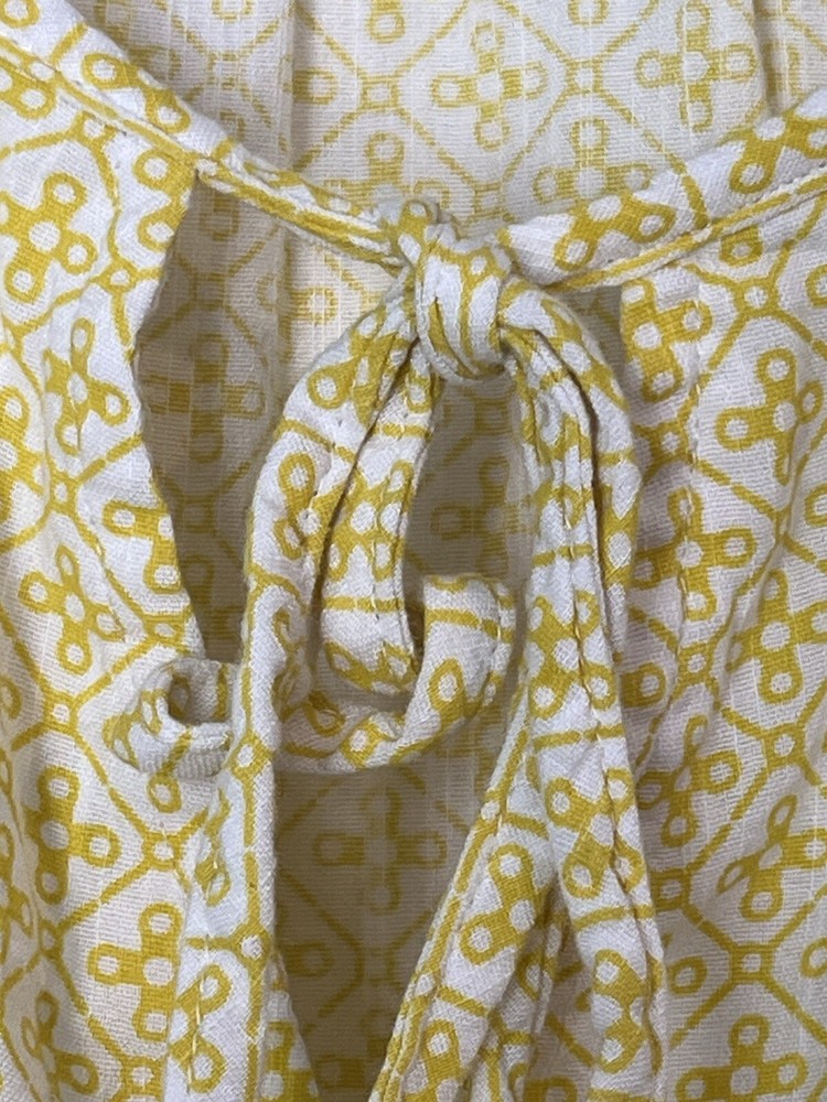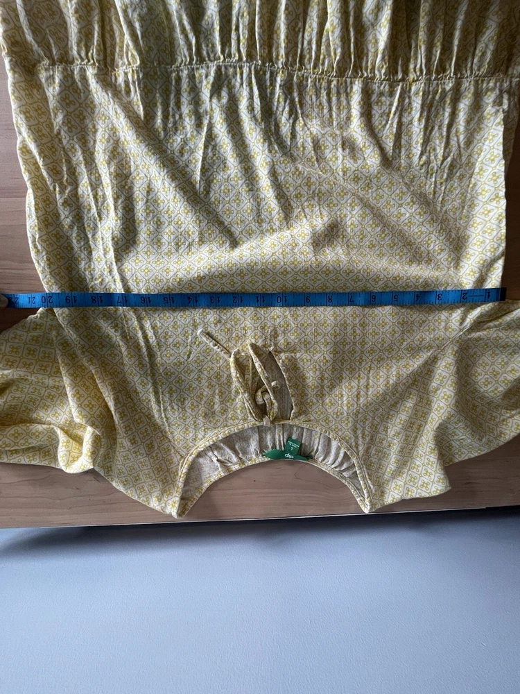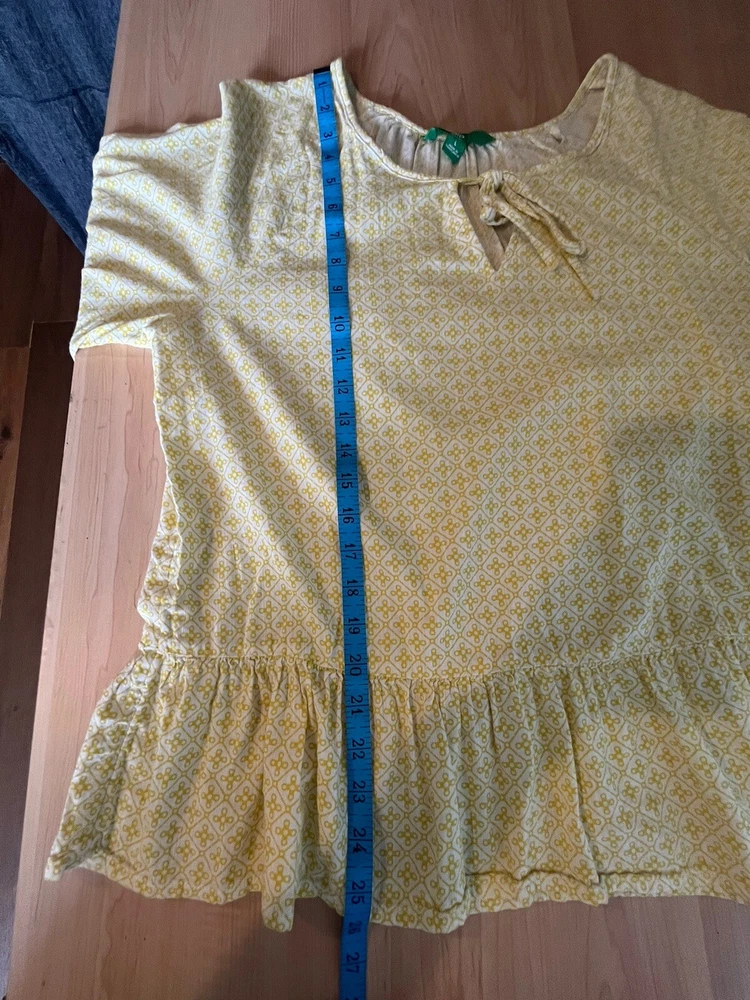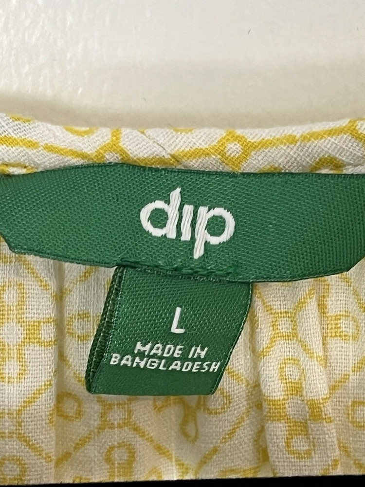 This beautiful yellow blouse from the dip is perfect for any occasion. The tie front and balloon sleeves add a touch of whimsy while the split neckline adds a hint of elegance. The long sleeves make it perfect for cooler weather, and it can be dressed up or down for any event. The size is a regular fit for women's clothing, and it is made from high-quality materials for lasting wear. Whether you're traveling, attending a party, or just running errands, this top is a versatile addition to any wardrobe. This item is from a smoke free home.